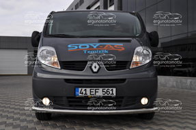 • Bu ürünümüz Ø 60X1,5 mm 304 kalite krom borunun, aracın ön tampon kavisine göre bükülmesiyle üretilmiştir. • Bağlantı aparatları 4 mm ST052 sacdan lazer kesim ile üretilerek, galvaniz ile kaplanmıştır.